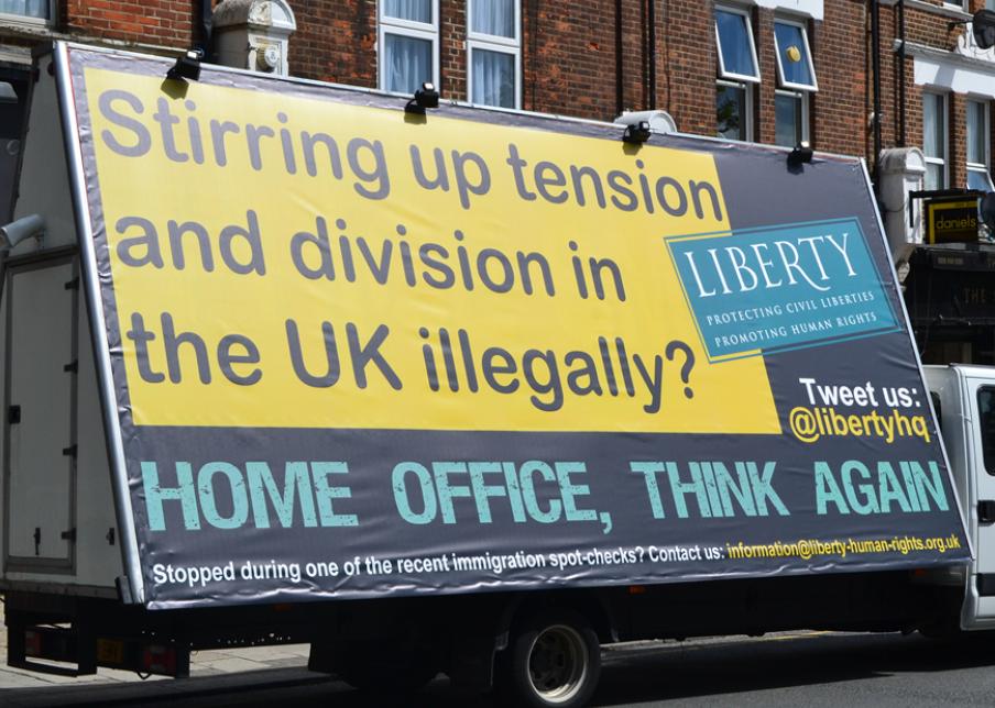 The UK Government targets ethnically diverse areas of London with mobile billboards carrying the slogan “In the UK illegally? Go Home or face arrest”. Liberty responds with an alternative van. The “Go Home” vans are subsequently scrapped.