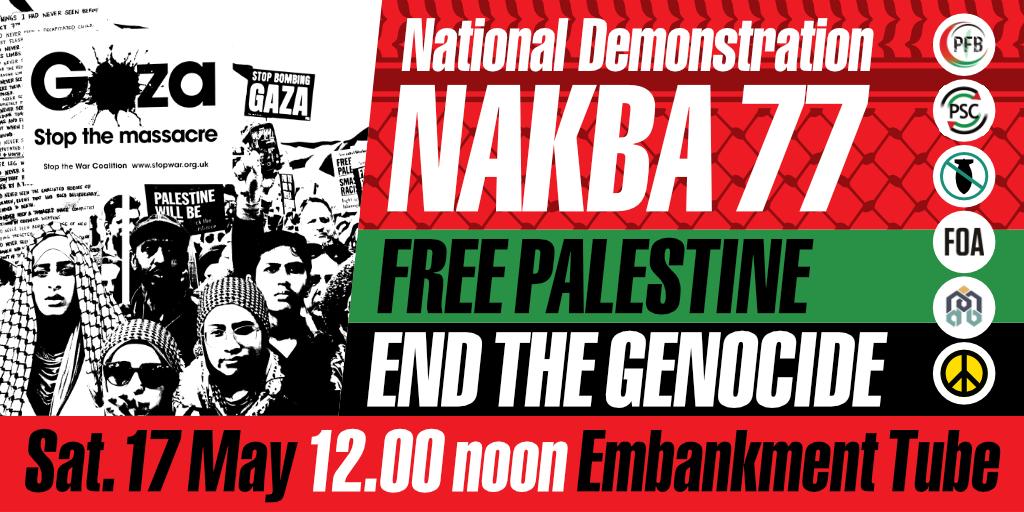 Organise now get leafleting (contact the office for leaflets), book coaches, arrange travel, put on street stalls make sure everyone knows about 17 May Nakba march.