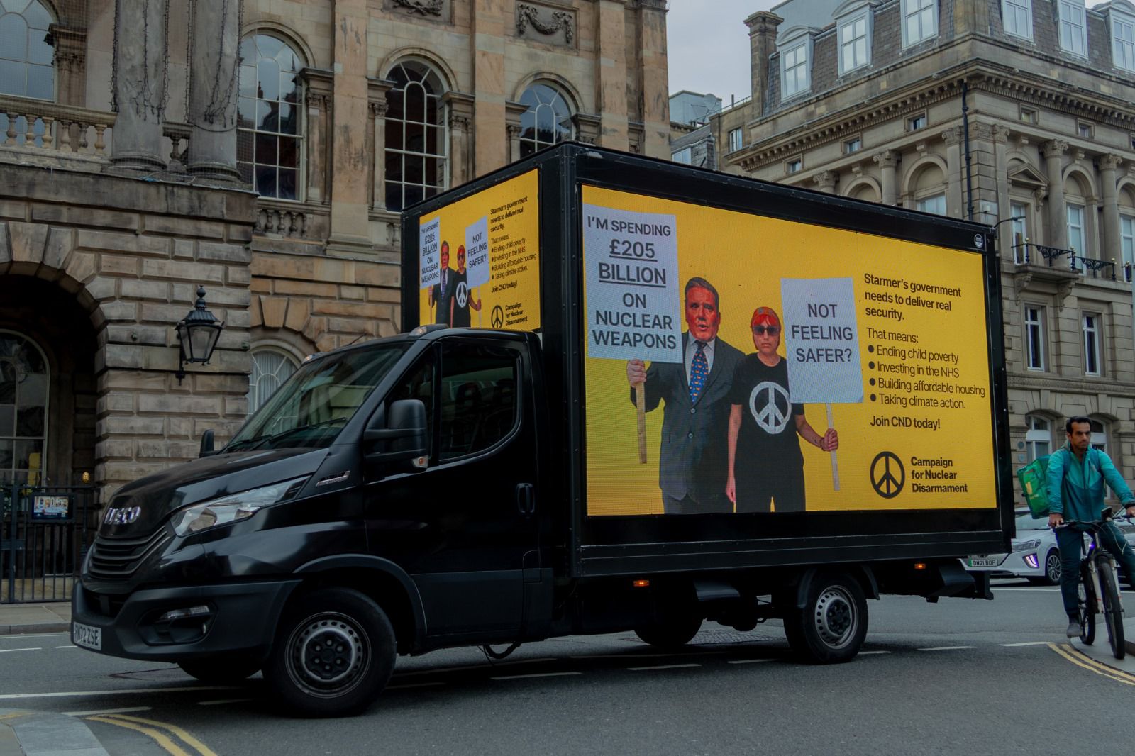 We did it! With your support, CND has been able to send vans with huge digital screens to this year’s Labour Party Conference in Liverpool. Now, let’s keep up the pressure on Keir Starmer!