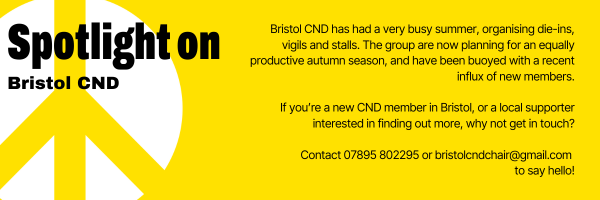 “Friday 26 September marked the International Day for the Total Elimination of Nuclear Weapons. On this day we launched our campaign against Britain’s reckless nuclear expansion, starting with a legal opinion we have secured showing that the government’s expansion of its nuclear weapons capability is in clear breach of international law....” writes CND General Secretary Sophie Bolt.