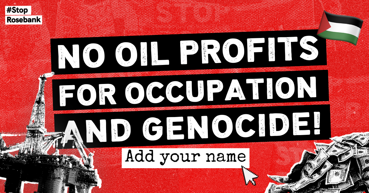If approved, Rosebank would not only produce more CO₂ than the 28 poorest countries do in a year – it could also send over £200 million to one of Israel’s biggest oil companies, which operates in illegal settlements in the West Bank and supplies fuel to the Israeli military.