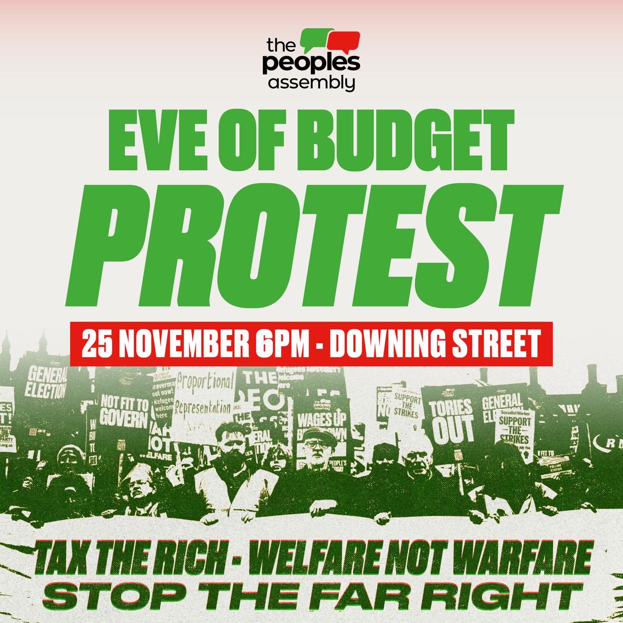 Stop the War will be supporting the People’s Assembly protest the night before Rachel Reeves’ budget, demanding an end to the drive for more military spending. Join us!