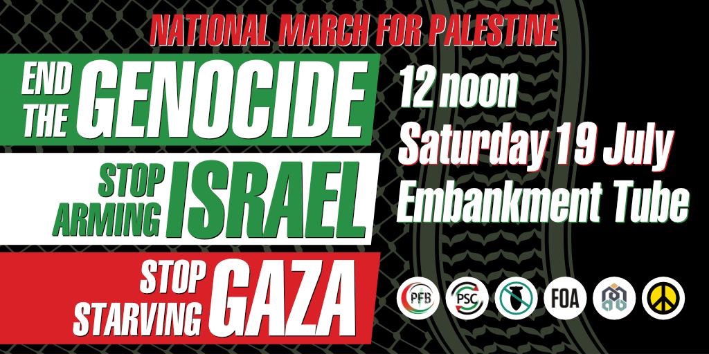 Tomorrow we march through the centre of London, from Embankment to Whitehall. We will be joined by Jeremy Corbyn MP, Leanne Mohamad (Palestinian activist), Richard Burgon MP, Mohammed Mustafa (medical doctor), Jen Brister (comedian), Nadine Shah (singer), Jo Grady (UCU Gen. Sec.), and more.