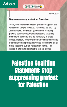The 11 October national demo in London will be massive – make sure you’re there for what looks set to be an historic Palestine protest. It will mark the 2nd anniversary of Israel’s genocide and comes at a time when Israel’s destruction of Gaza has reached an unimaginable scale with the latest death toll now about 68,000, and some reporting it may be as much as ten times higher.