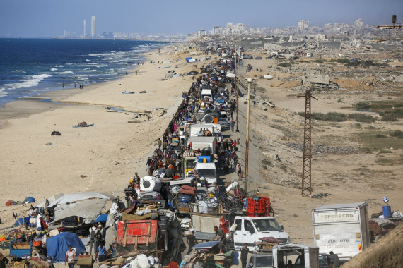 That demolition is currently leading to around a million Palestinians in Gaza being slowly forced south to a hugely overcrowded and under-resourced ‘humanitarian zone’ close to the Egyptian border. It is as if the entire population of Manchester were being forced to travel long distances, mostly on foot along dangerous roads, while facing constant risk of attack, to tented camps as winter approaches.