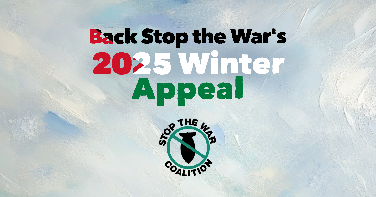 To do this we need your help. Our winter appeal is our main fundraising activity of the year. We need to reach our target of £75,000 if we are to continue to build an effective anti-war movement across Britain. Please help!