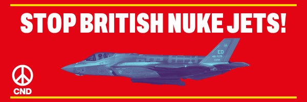CND has called a national demonstration at RAF Marham, where the UK government plans to station new nuclear-capable F-35 jets. The government’s decision to purchase these ‘nuke jets’ represents a reckless nuclear escalation. It comes as the hands of the Doomsday clock have been moved closer to midnight, showing that we have never been closer to global catastrophe. Please help us to grow the opposition to these dangerous developments.